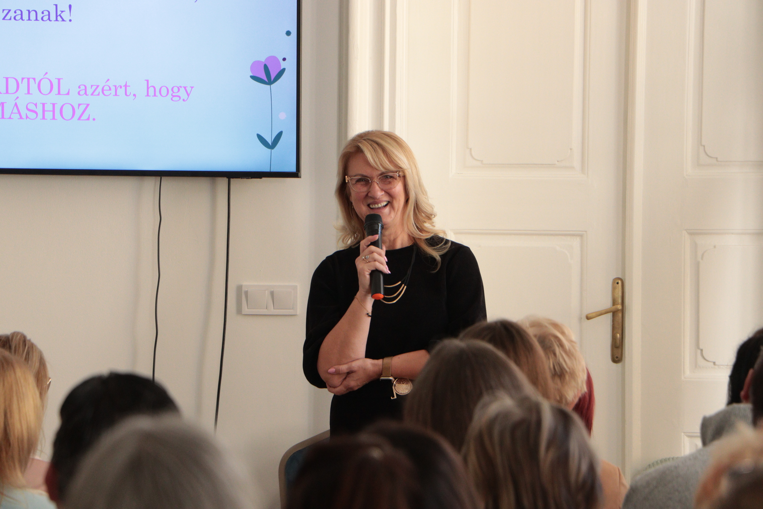 Bíró Délia, pszichológus és gyermekjóléti igazgatónk vezette a szakmai napot, aki elsőként az önismeret fontosságáról beszélt, kihangsúlyozta, hogy önismeret nélkül könnyen eltávolodunk magunktól, hogy közelebb lehessünk máshoz, és nem helyesen, mindig a másik változását várjuk.