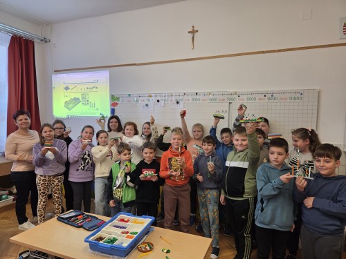 A foglalkozást Boronkay Andrea igazgatóhelyettes és osztálya mutatta be, szemléletesen bizonyítva, hogy a logikus gondolkodás, a kreativitás és az együttműködés egyszerre fejleszthető ebben a tanulási formában. Nem véletlen, hogy 2025-ben éppen ezzel az innovációval nyerte el a pedagógus, illetve az iskola a Katolikus Innovációs Díjat – technológiai innováció kategóriában, országos pályázat keretében. A LEGO-matek mellett az intézmény más pedagógiai programban is részt vállal, például a Családi Életre Nevelés- és az Iskolakert Programban is.