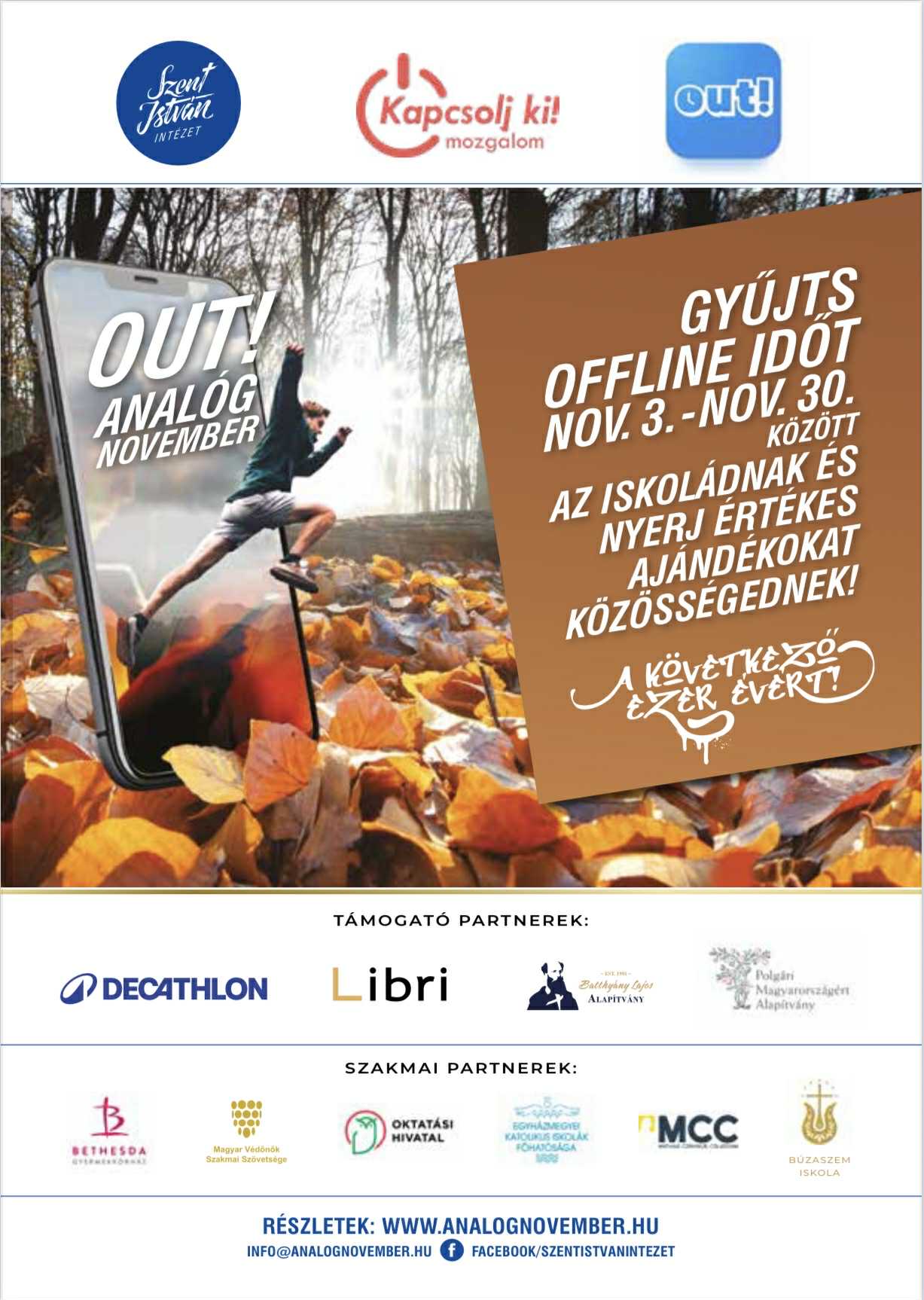 A nagysikerű tavaszi digitális böjt pozitív visszajelzései után a Szent István Intézet novemberre új kihívást hirdetett meg. Az „Analóg November – Gyűjts offline időt az iskoládért!” kampány beharangozóján a fiatalokat érő digitális ártalmakról és az ártalomcsökkentés gyakorlati útjairól tartottak kerekasztal beszélgetéseket, amelyen a Szent Mihály Intézményfenntartó is ott volt, mint szakmai partner.