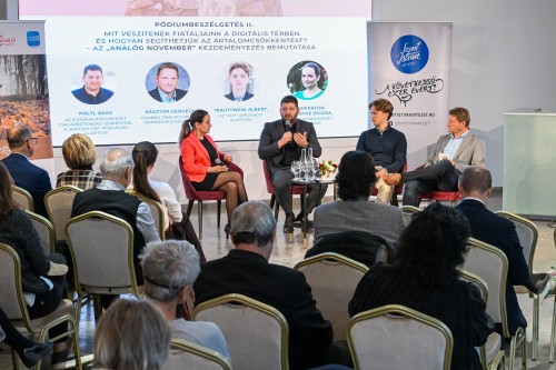 A második kerekasztal alatt Pöltl Ákos az Ifjúságkutató Intézet családbiztonsági szakértője, a „Kapcsolj ki!” Mozgalom alapítója, Pásztor Gergely gimnáziumigazgató, középiskolai tanár és Trauttwein Albert, az “Out!” applikáció alapítója beszélgetett az ártalomcsökkentésről a gyakorlatban és az „Analóg November” kezdeményezésről.