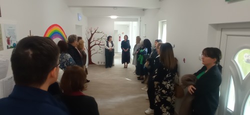 A szakmai nap a felújított óvodai épület megtekintésével kezdődött. Oravecz Anett, Karancsberény polgármestere köszöntötte óvodaigazgatóinkat. Polgármester asszony szívügyének tekintette az óvoda elindítását, és a példaértékű együttműködésnek is „motorja” az önkormányzat, a település, valamint az óvoda között a mindennapokban.