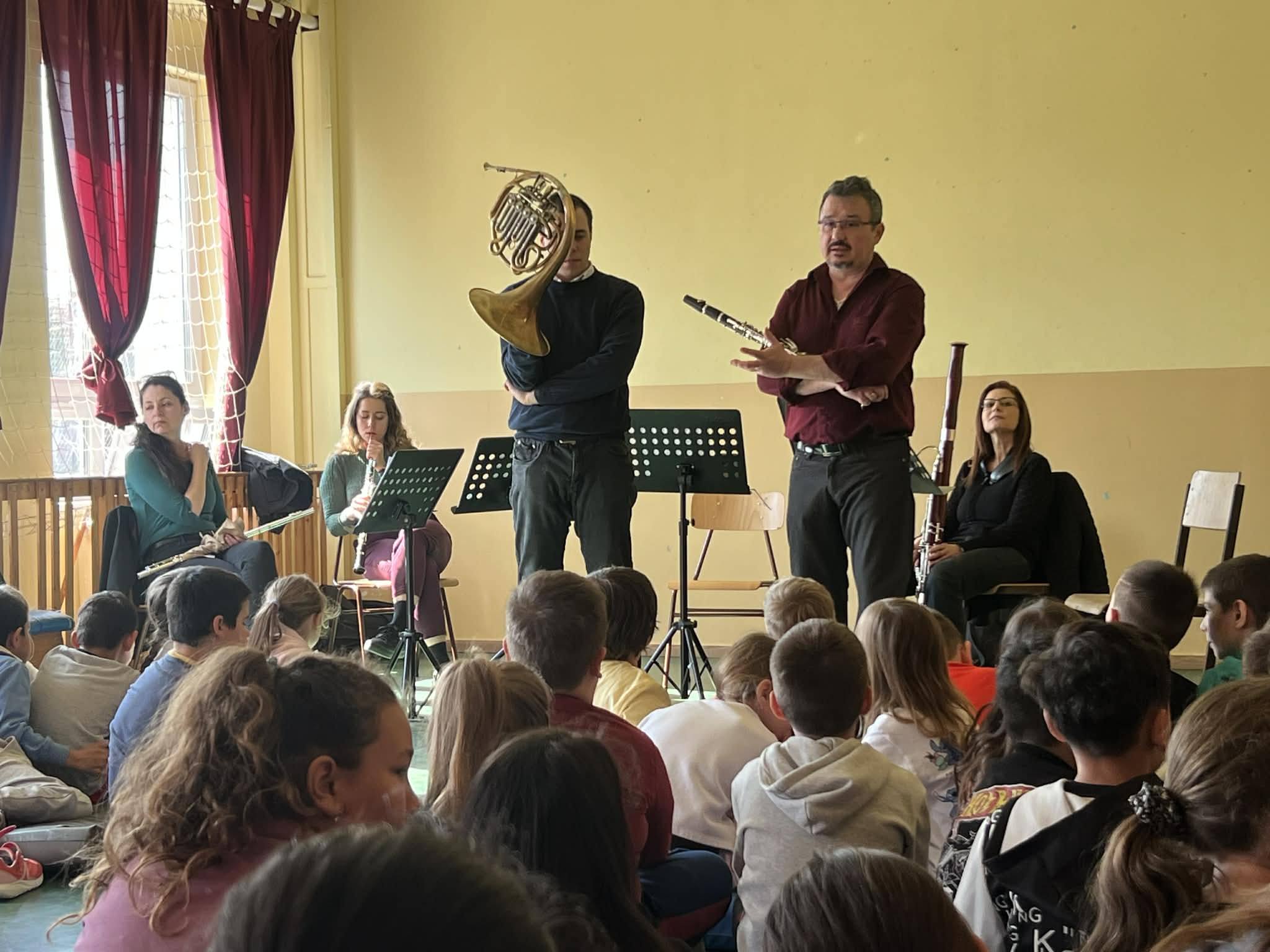 A Vác Civitas Szimfonikus Zenekar kamaraegyüttesei szó szerint házhoz vitték a komolyzenét: az iskolákban a gyerekek nemcsak hallgatói, hanem aktív résztvevői is lehettek az előadásnak. A hangszerbemutatók során testközelből ismerkedhettek meg a hangszerekkel, kérdezhettek, sőt, ki is próbálhatták azokat. A koncert nem csupán élményt adott, hanem tudást is: a zenészek – akik többségükben maguk is pedagógusok – a művek közötti magyarázatokkal segítették a diákokat eligazodni a zene világában. A műsor érintette a nagy stílustörténeti korszakokat, és olyan darabok is megszólaltak, amelyek a tananyaghoz is kapcsolódnak – így a tanulás valódi, átélhető tapasztalattá válhatott.
